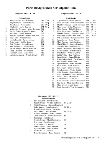 Porin Bridgekerhon MP-kilpailut 1982